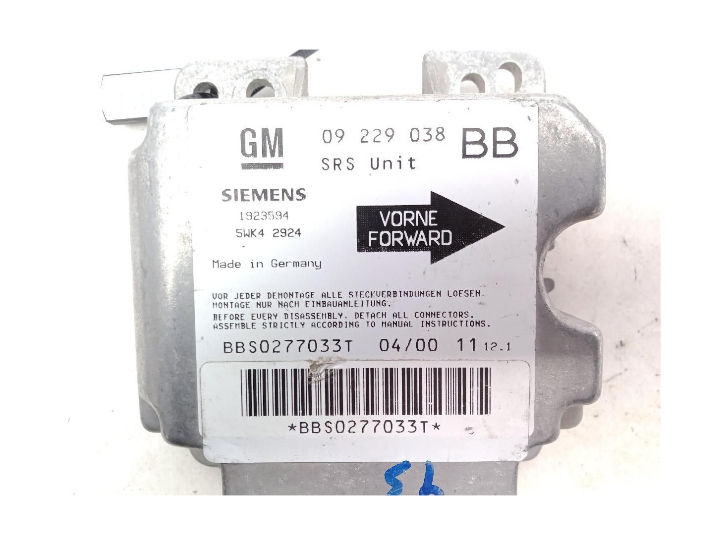 09229038BB, CENTRALITA AIRBAG OPEL CORSA B (S93) |Desguaces La Cabaña