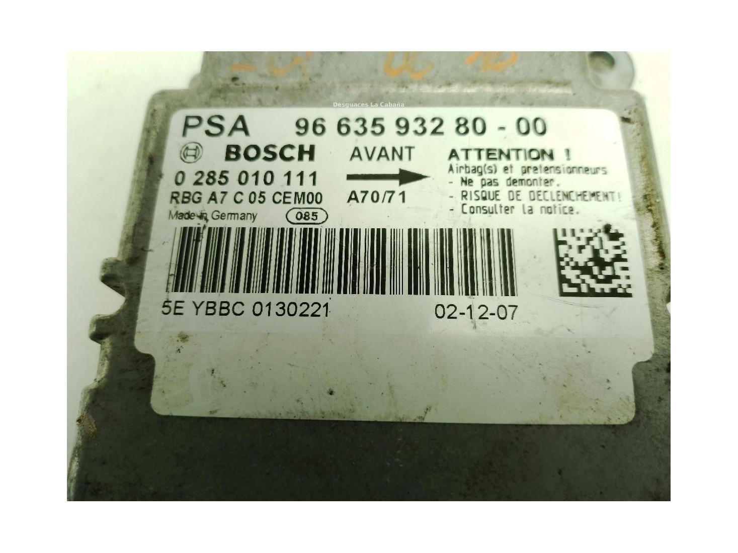 9663593280, CENTRALITA AIRBAG PEUGEOT 207 (WA_, WC_)|Desguaces La Cabaña
