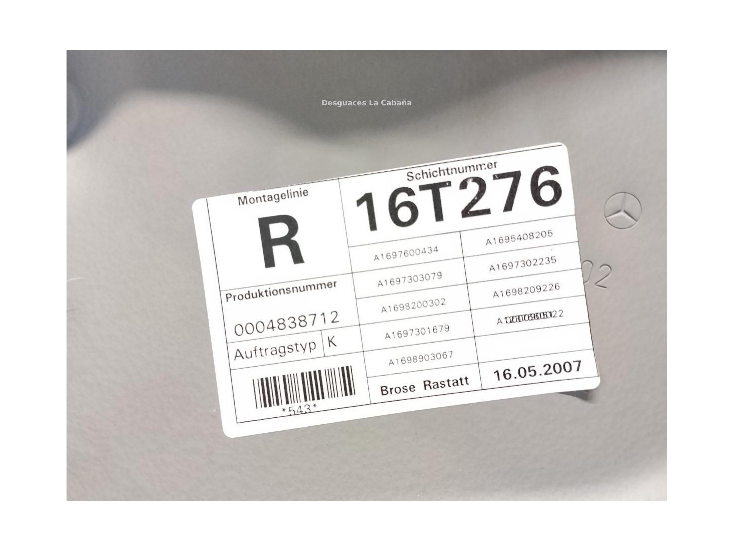 A1697303879 ELEVALUNAS PUERTA LAT TRA DER MERCEDES BENZ CLASE B (W245)|Desguaces La Cabaña