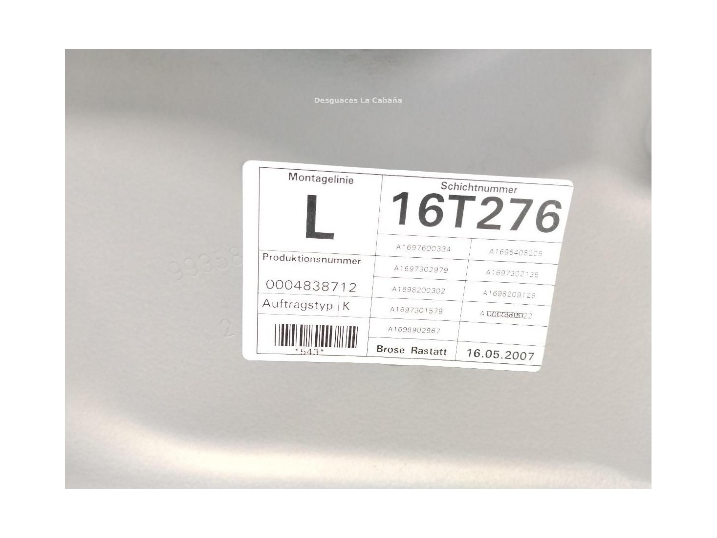 A1697303779 ELEVALUNAS PUERTA LAT TRA IZQ MERCEDES BENZ CLASE B (W245)|Desguaces La Cabaña